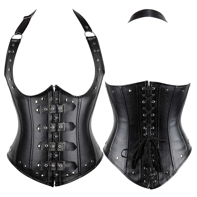 Corsé de mujer de polipiel negra - Estilo gótico victoriano Ver opciones