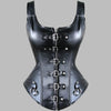 Corsé gótico negro de cuero con cremallera y correas con hebillas