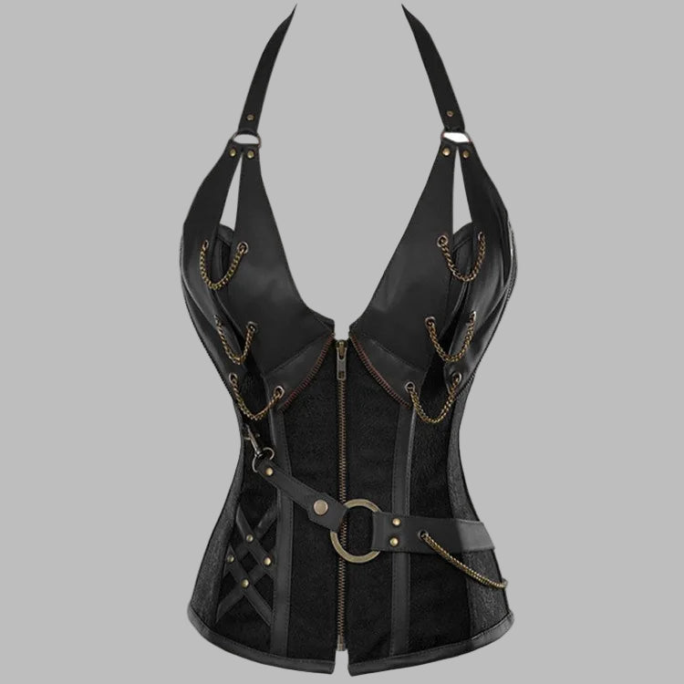 Corsé Gótico Negro Punk con Cadenas y Detalles de Cuero