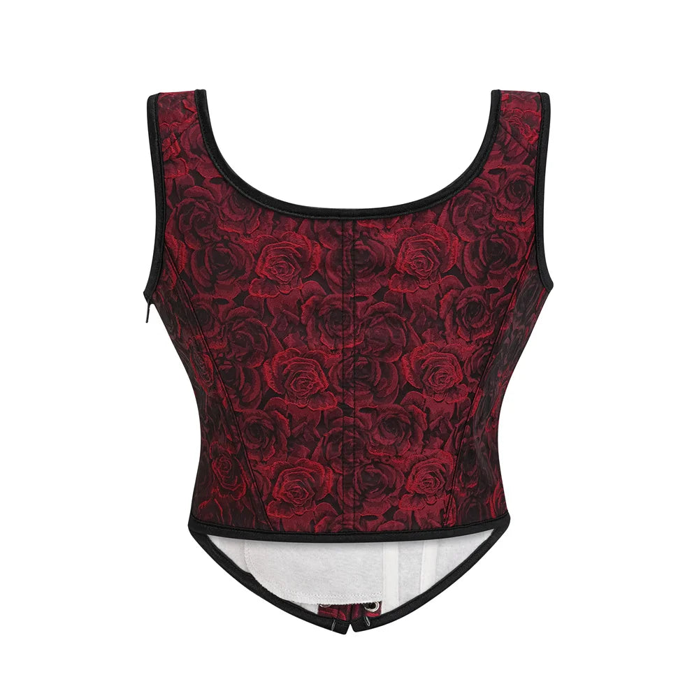 Corsé gótico rojo y negro con rosas y tirantes