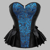 Corsé gótico steampunk con patrón azul y cierres metálicos