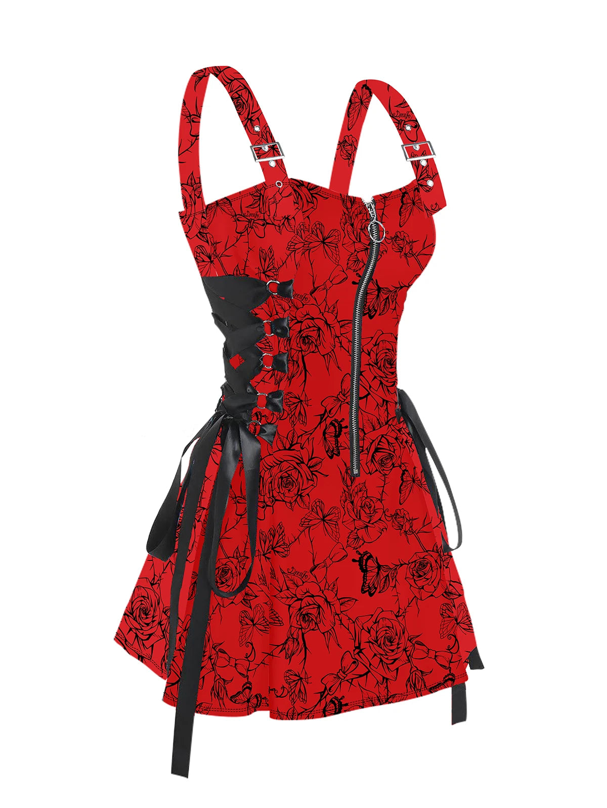 Corsé Punk Rock Rojo con Rosas y Tirantes