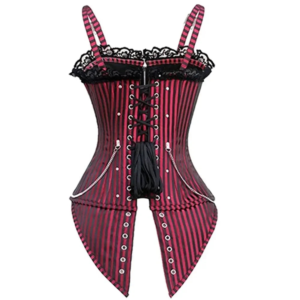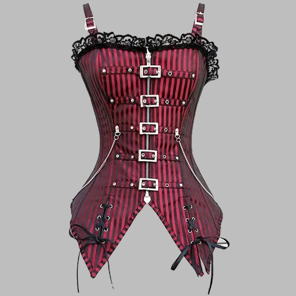 Corsé Rock Metal con Hebillas, Cadenas y Correas Burdeos