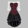 Corsé Steampunk Burdeos con Falda Negra de Encaje Hi-Lo 6XL