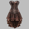 Corsé Steampunk con Falda Asimétrica de Encaje Marrón