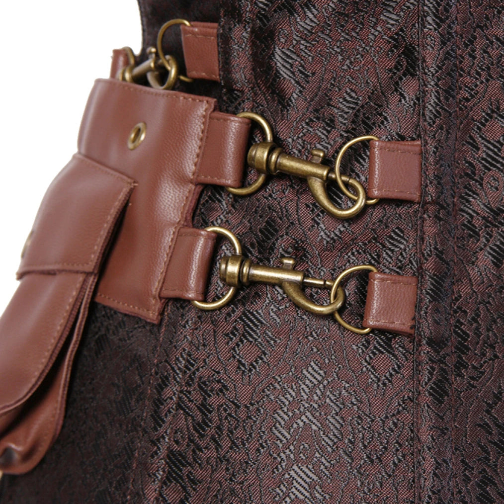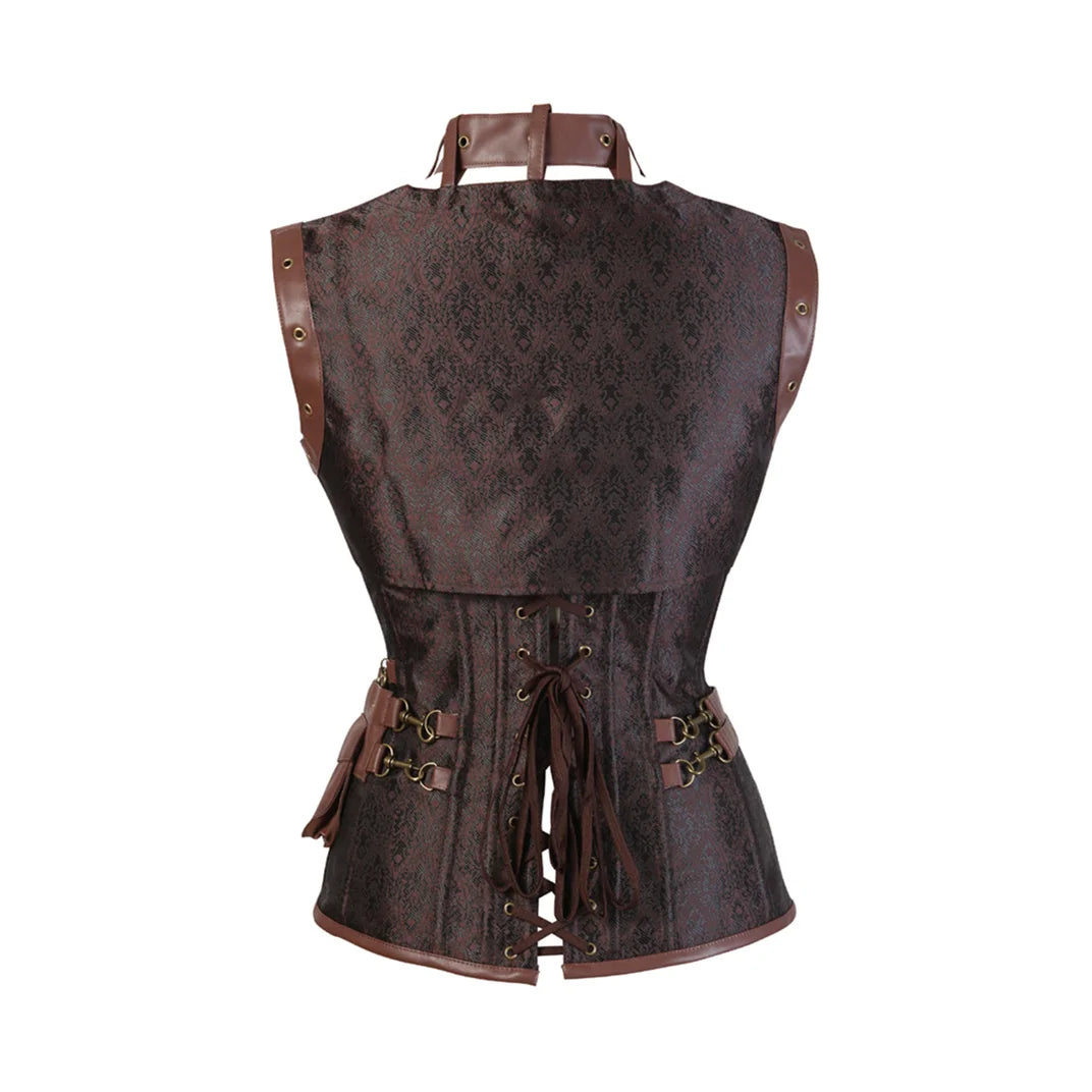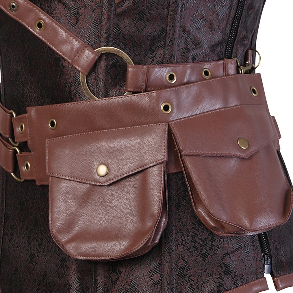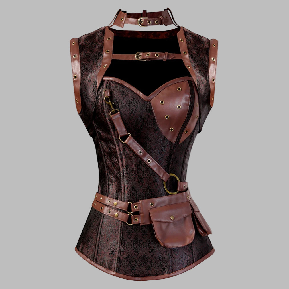 Corsé Steampunk de Cuero Marrón con Correas Decorativas