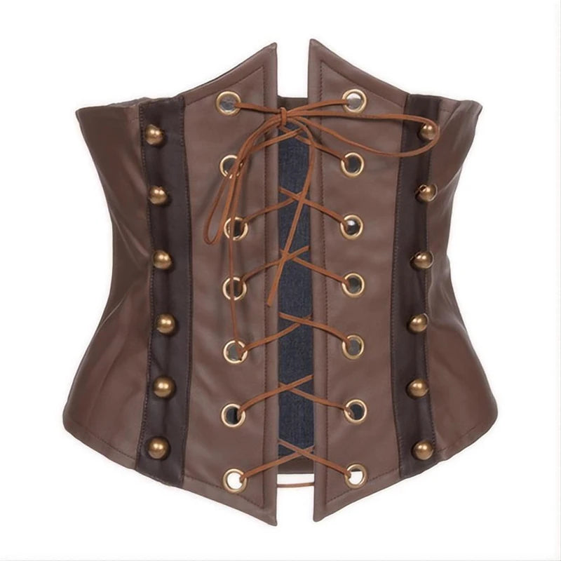 Corsé Steampunk Marrón de Cuero con Cordones y Botones