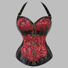 Corsé Steampunk Rojo de Brocado con Elementos de Cuero Negro y Hebillas Ver opciones
