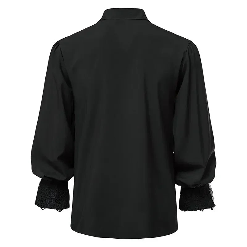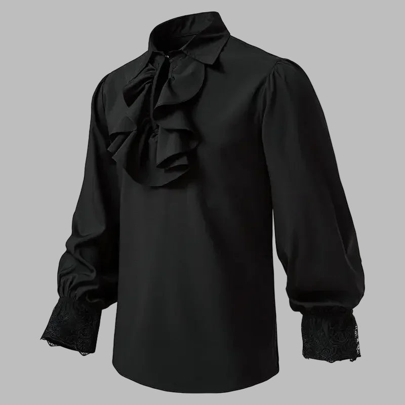 Czarna Koszula Rock z Koronkowymi Mankietami i Żabotem Ver opciones