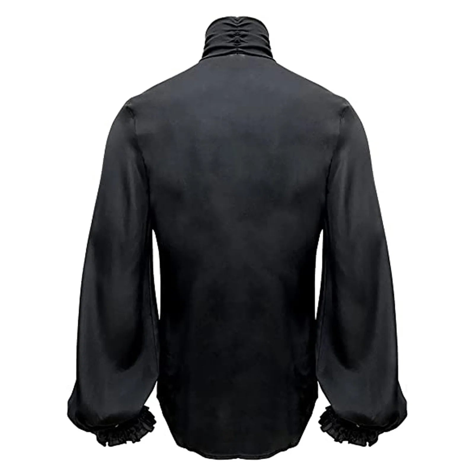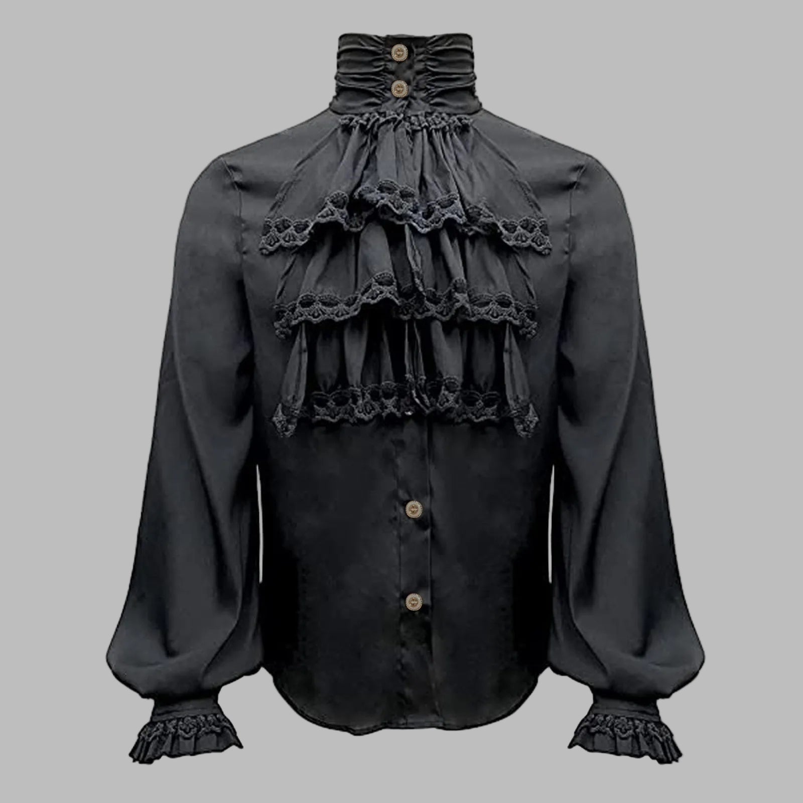 Czarna Koszula Steampunk z Koronkowymi Falbanami i Wysokim Kołnierzykiem Ver opciones