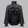 Czarna Koszula Steampunk z Koronkowymi Falbanami i Wysokim Kołnierzykiem XXL