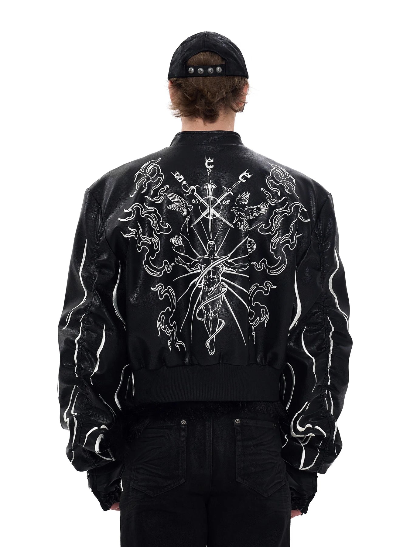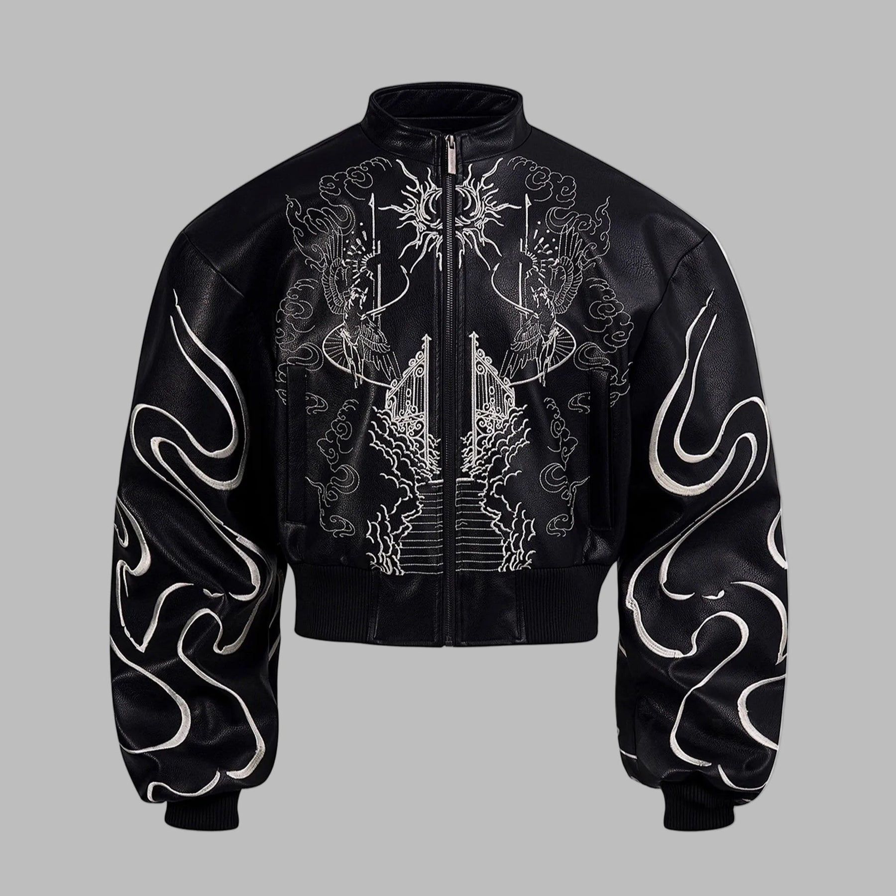 Czarna Kurtka Goth Metal Bomber z Haftem Aniołów i Nieba Ver opciones