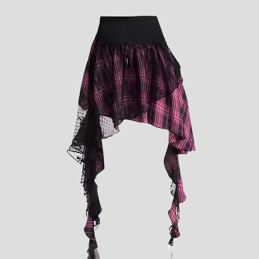 Falda Asimétrica Grunge a Cuadros Violeta Ver opciones