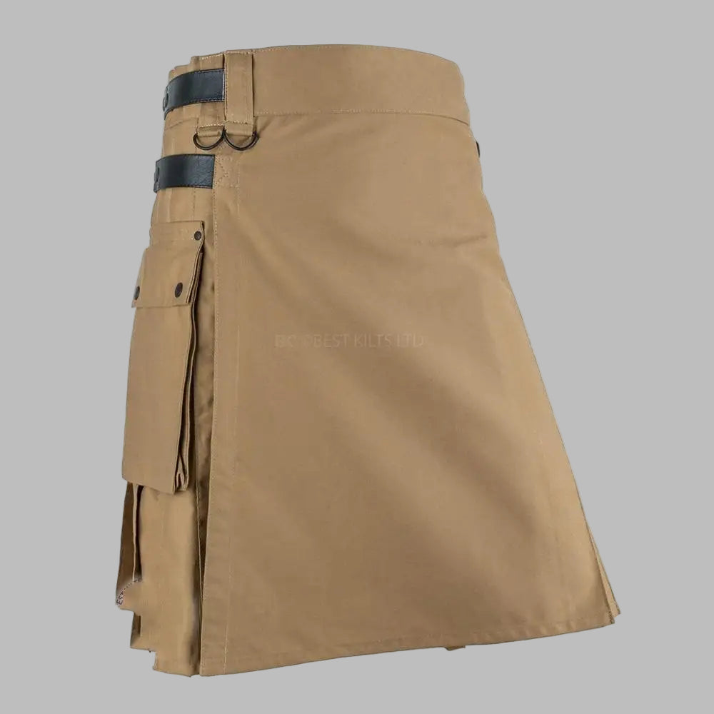 Kilt Steampunk Beige con Correas y Hebillas de Cuero