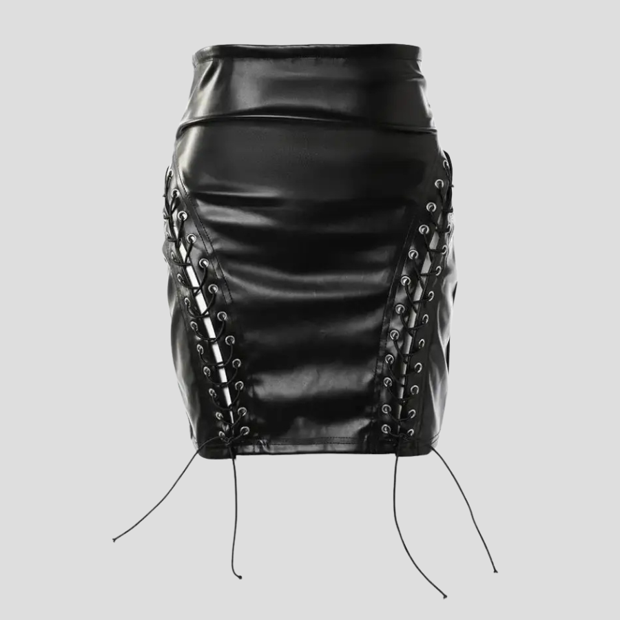 Falda Gótica de Cuero Negra con Cordones Corta Ajustada