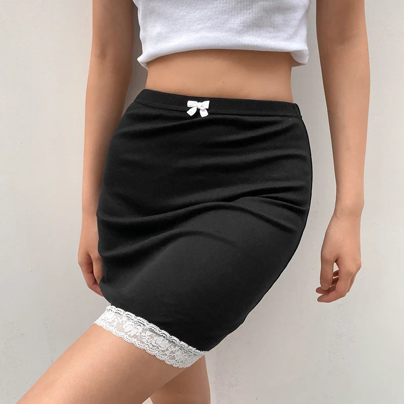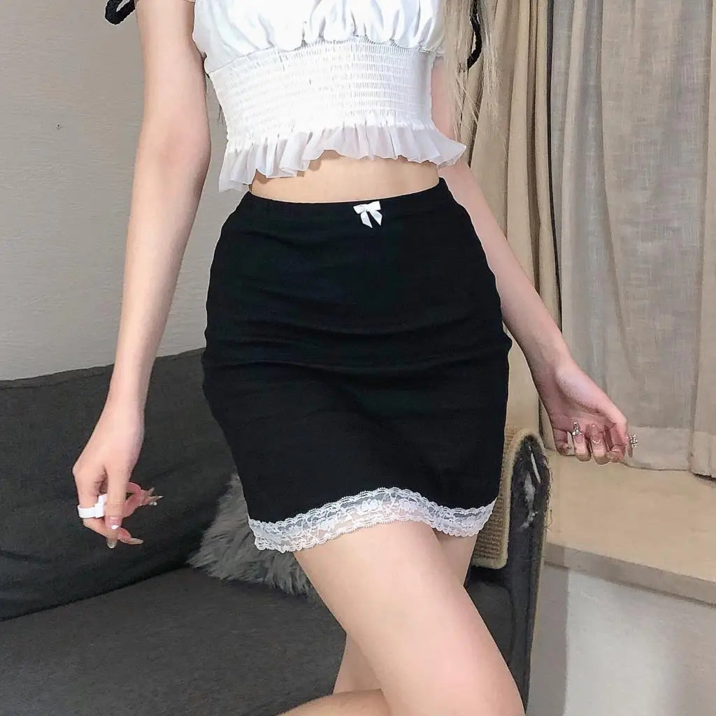 Falda Gótica Negra de Encaje Mini para Mujer