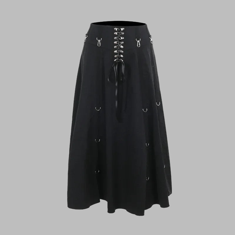 Falda gótica negra larga asimétrica con corsé y volantes Ver opciones