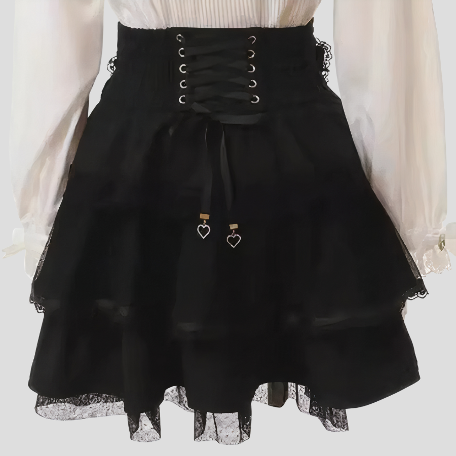 Falda Gótica Rockera con Cadena de Perlas y Volantes Ver opciones