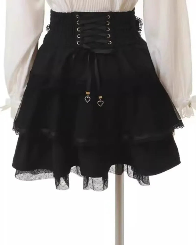 Falda Gótica Rockera con Cadena de Perlas y Volantes