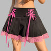 Falda Grunge Gótica con Lazos Rosas y Encaje