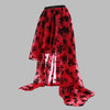 Falda Larga Asimétrica Roja con Flores Negras Estilo Rock 6XL