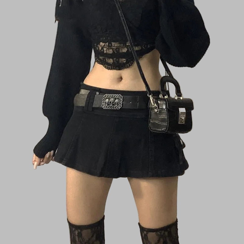 Falda Mini Plisada Gótica Punk con Apliques Metálicos