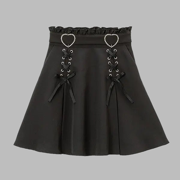 Falda Negra Punk Rock Jirai Kei con Cordones de Corsé y Corazones Ver opciones