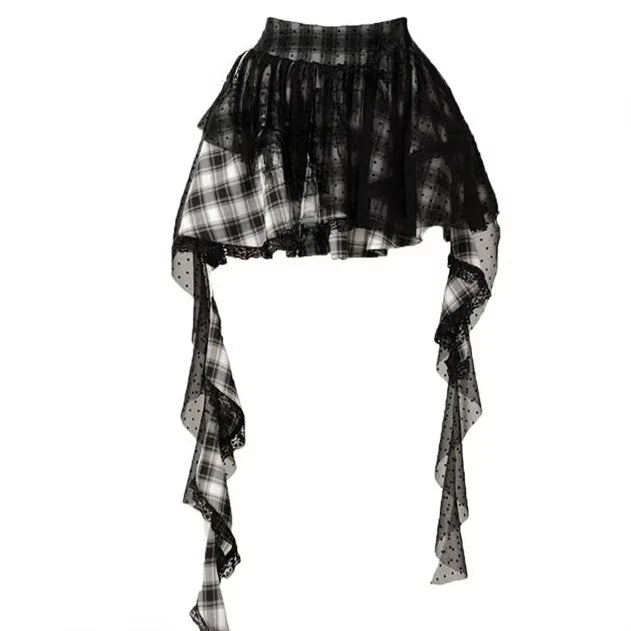 Falda Punk de Cuadros con Encaje y Lazos