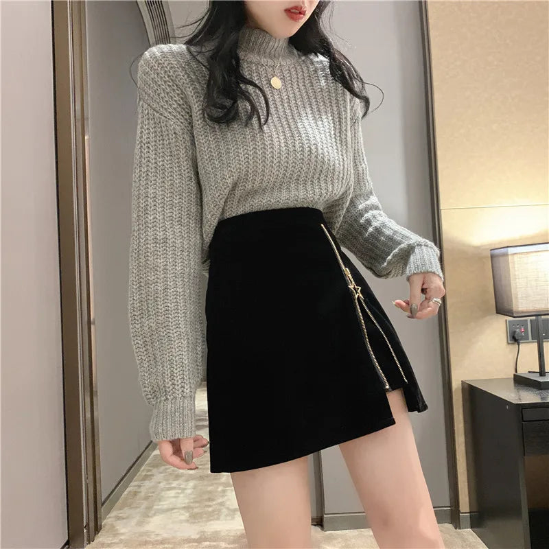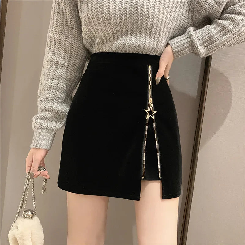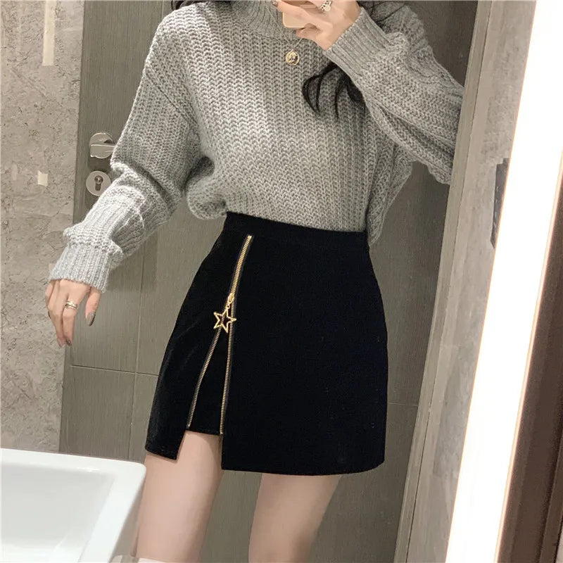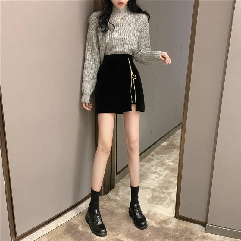 Falda Punk Gótica Negra con Cremallera y Estrella