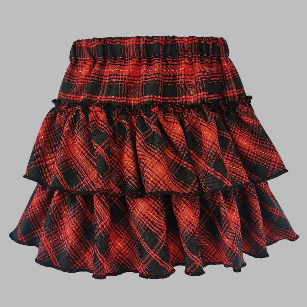Falda Roja de Cuadros con Volantes Grunge Punk Rock
