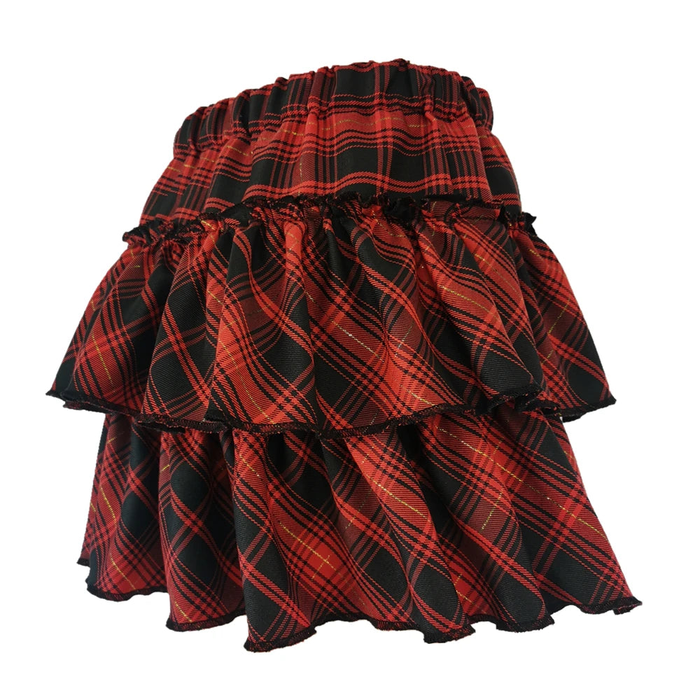 Falda Roja de Cuadros con Volantes Estilo Grunge Punk Rock