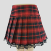 Falda Roja de Estilo Grunge Punk a Cuadros con Encaje en el Dobladillo
