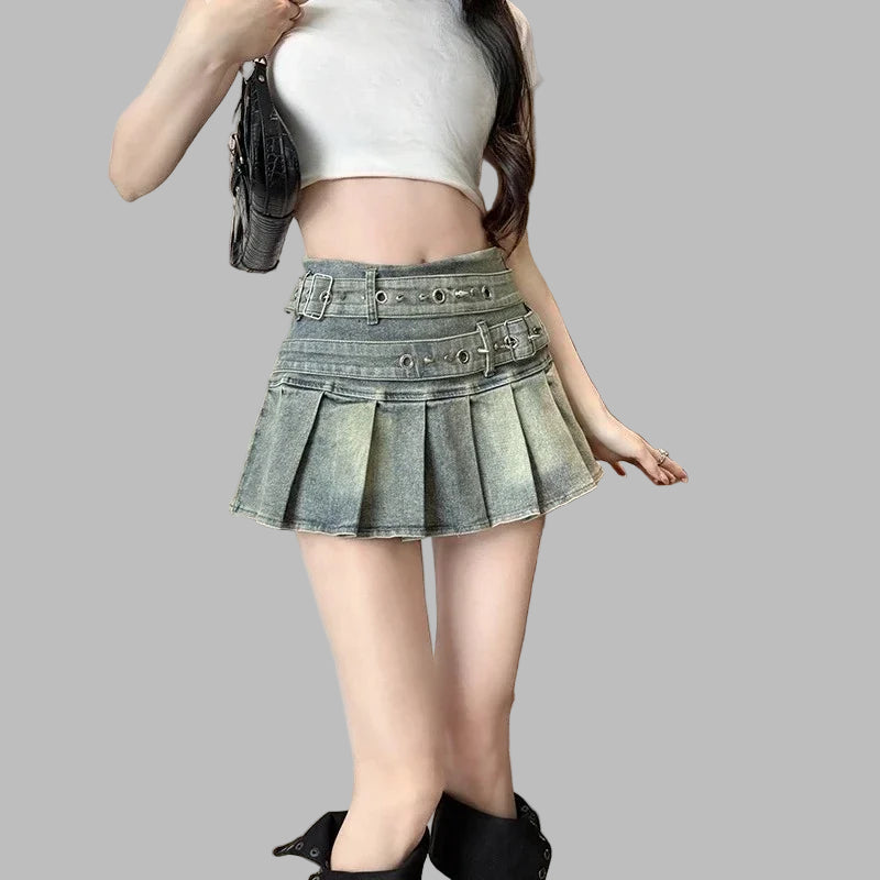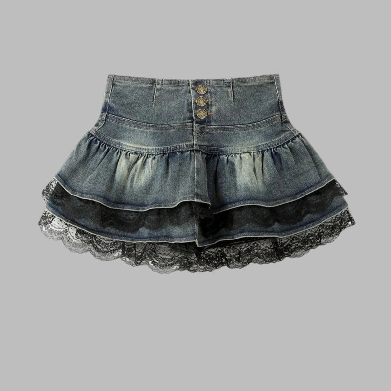 Falda Vaquera con Volantes y Encaje Negro Punk Rock