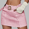 Falda Vaquera Rosa Punk Desgastada con Cinturón