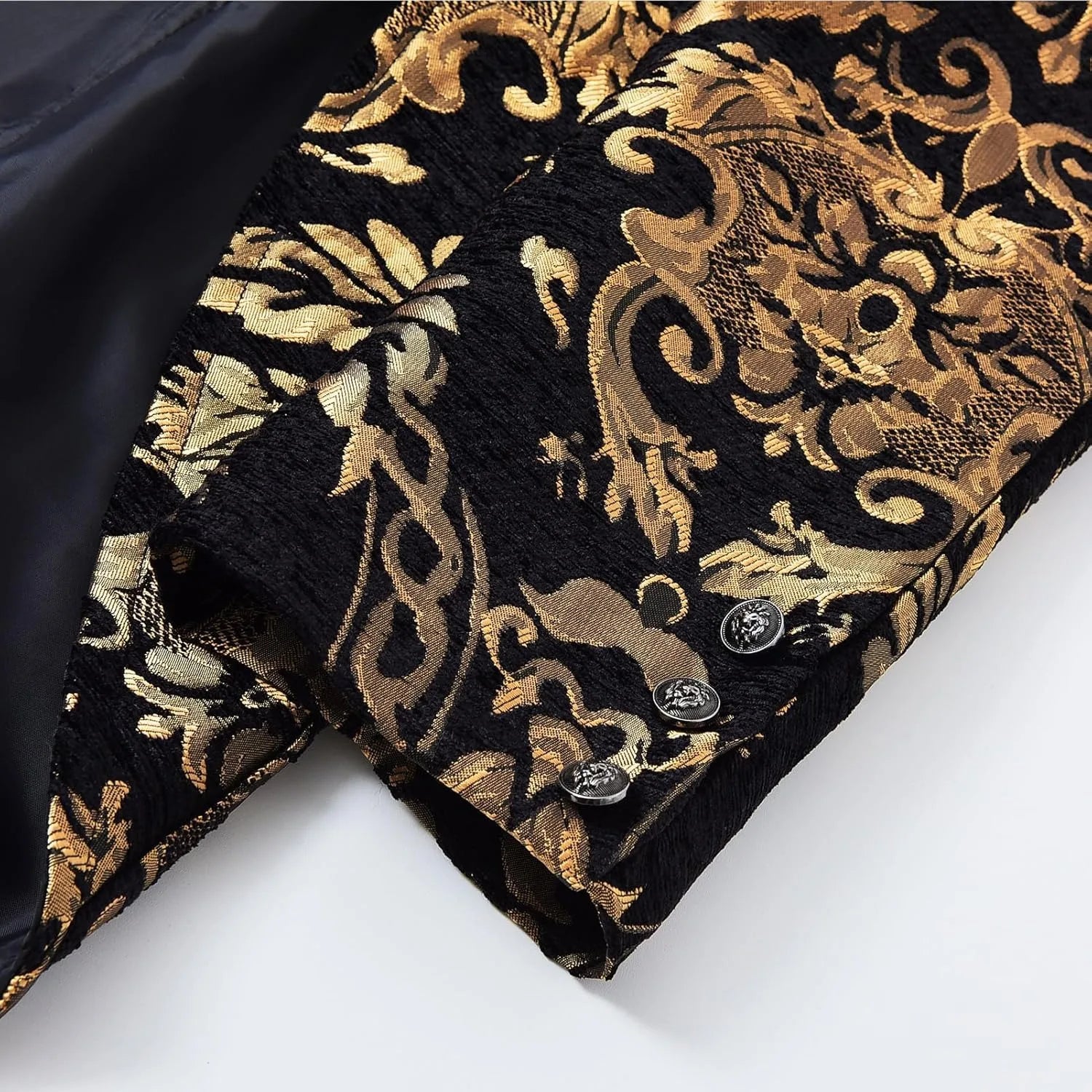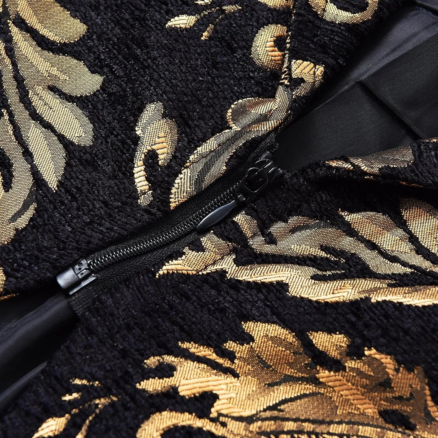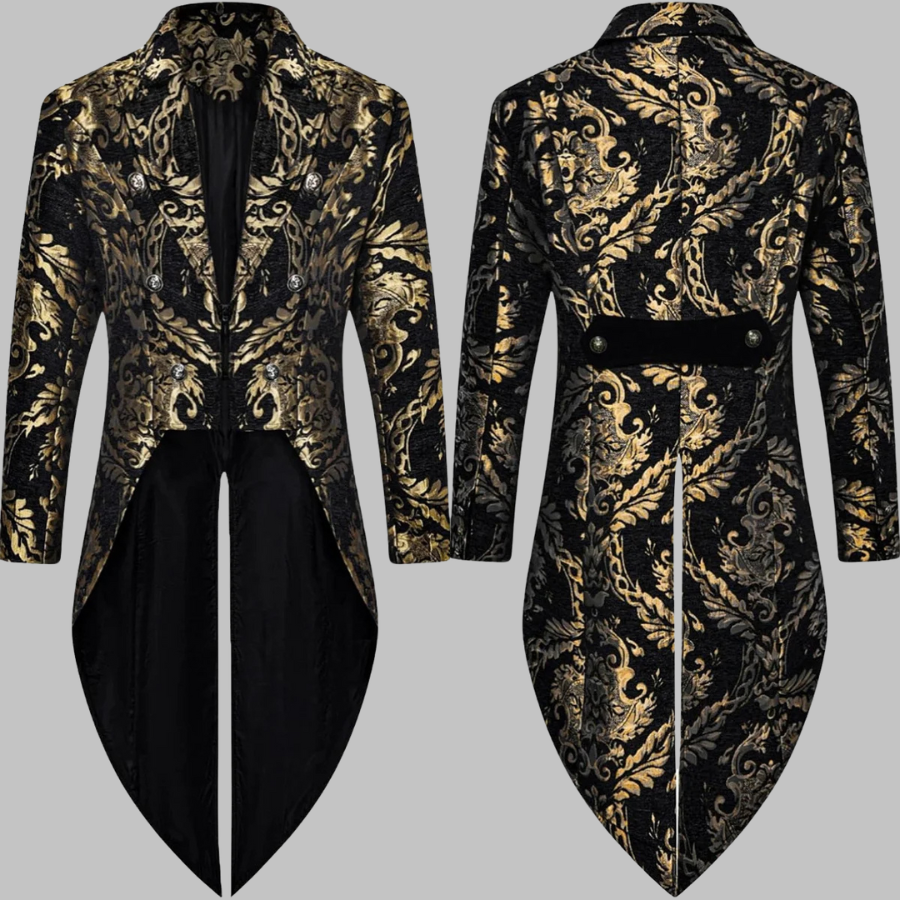 Haftowany frak gotycki steampunk dla mężczyzn – czarno-złoty złoty