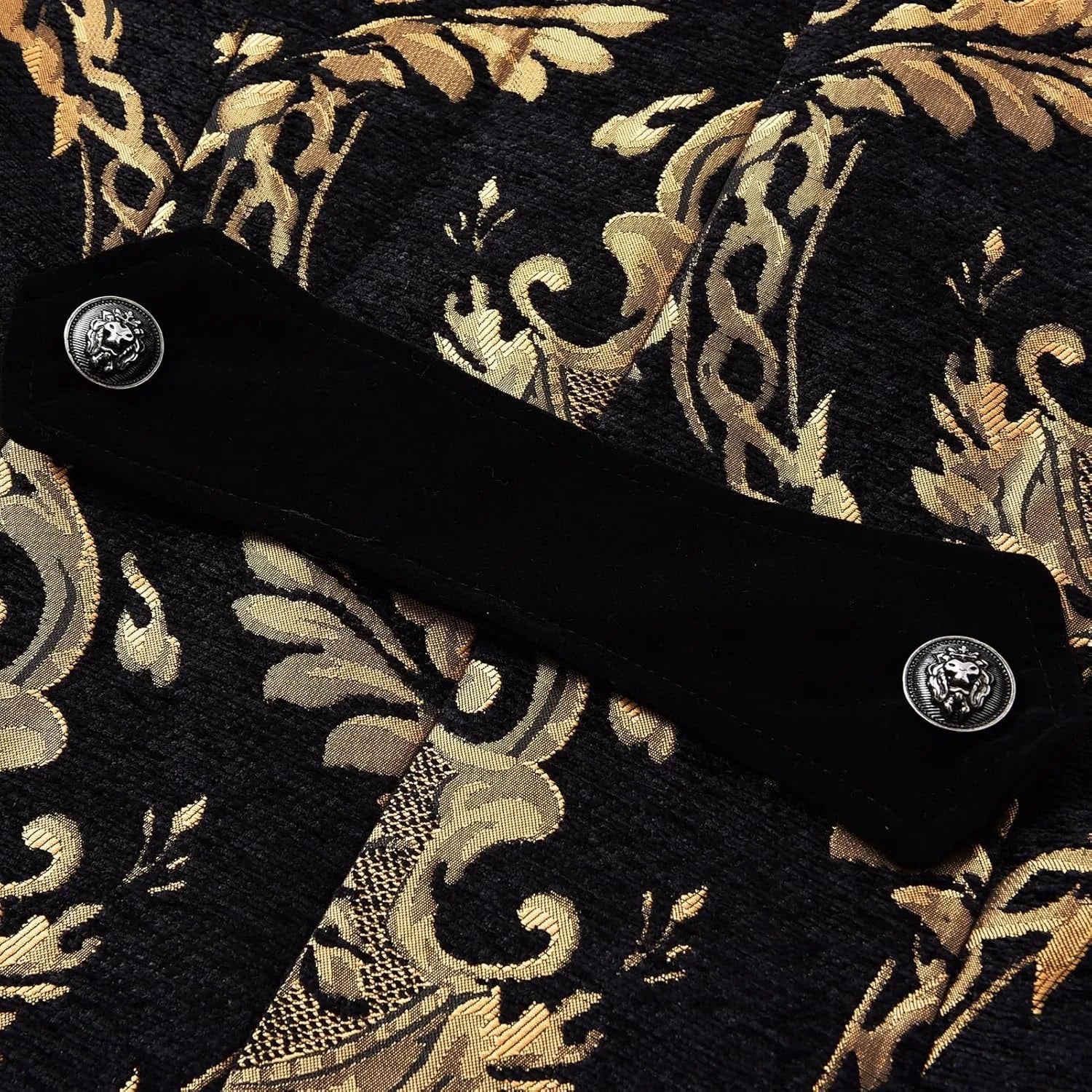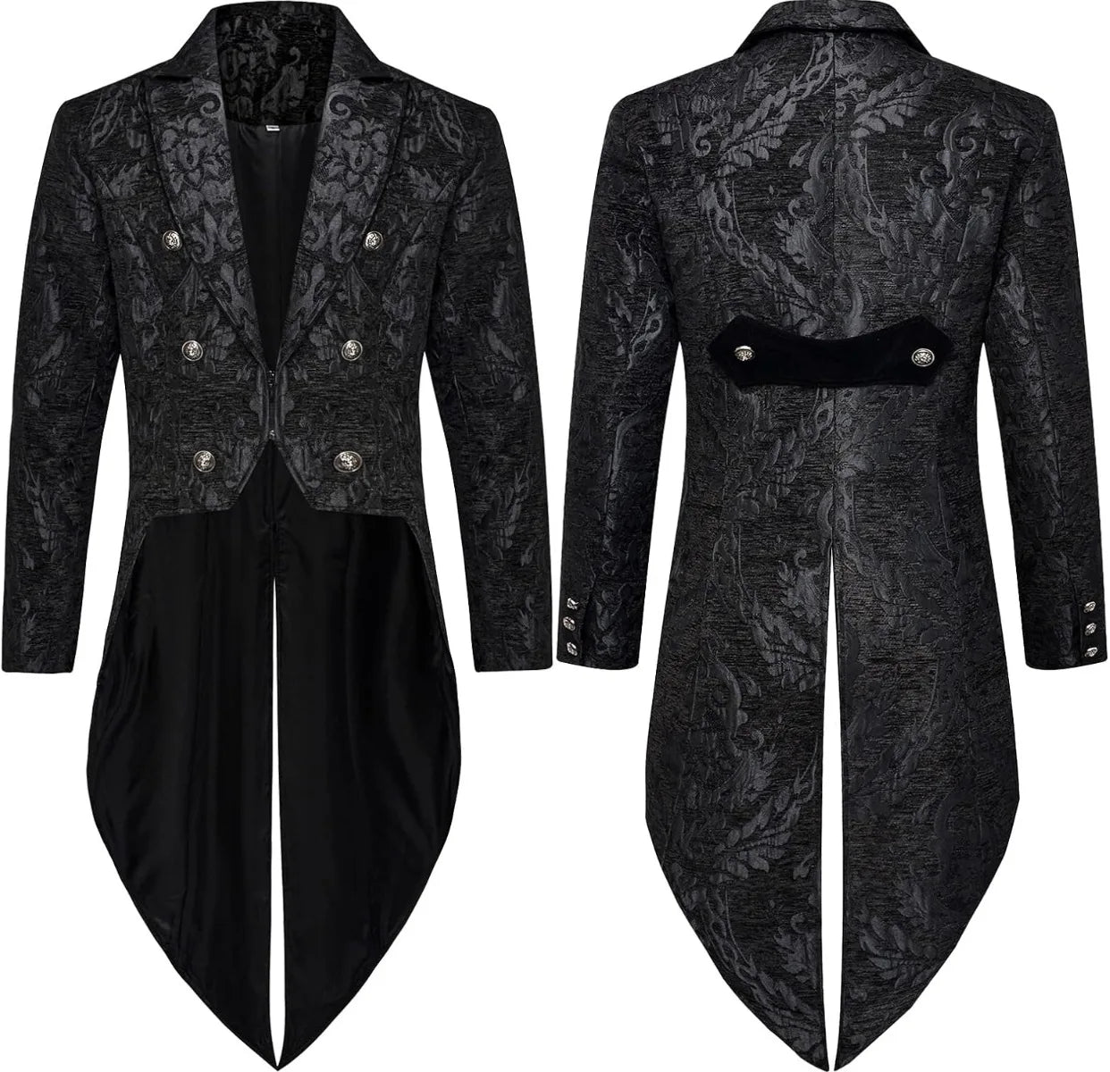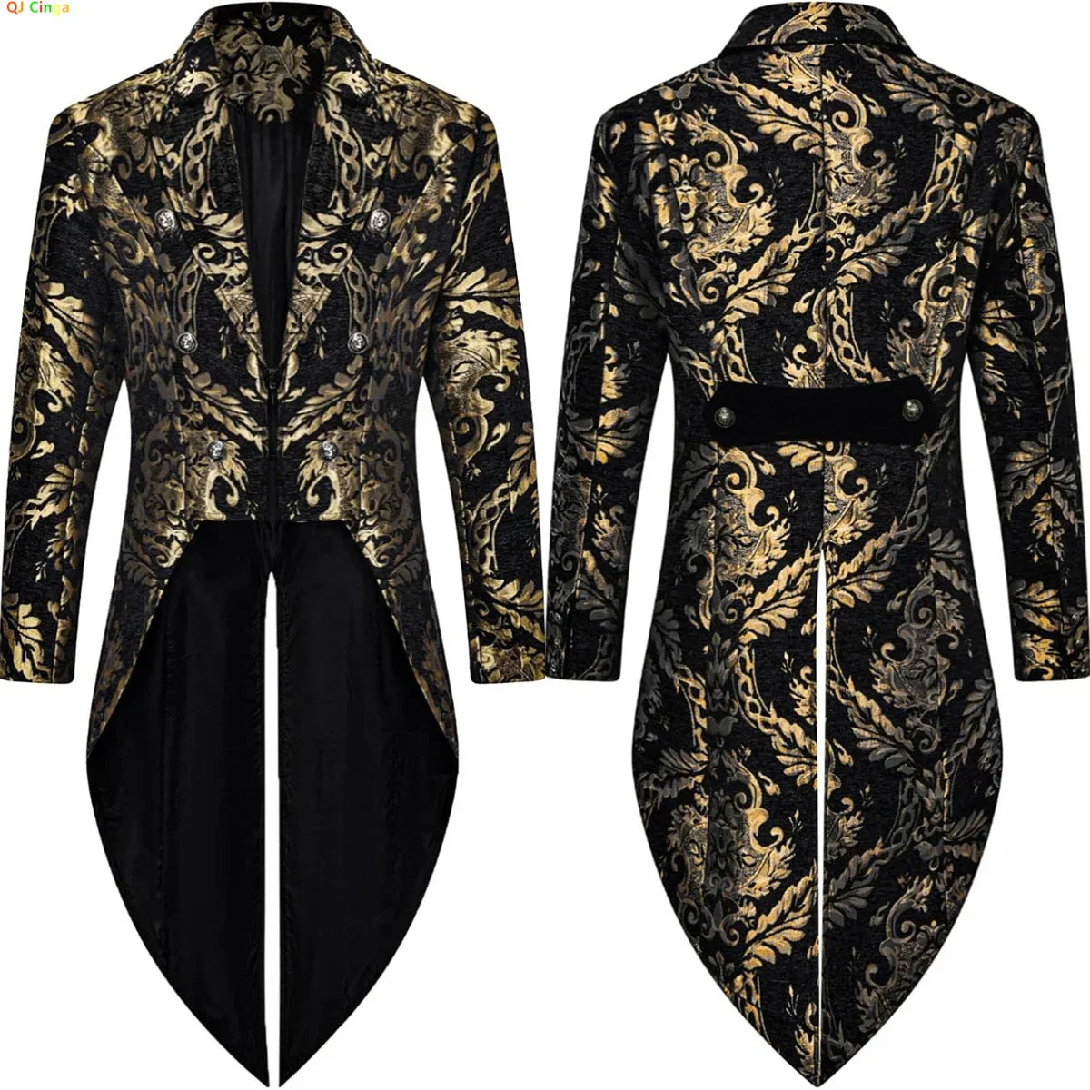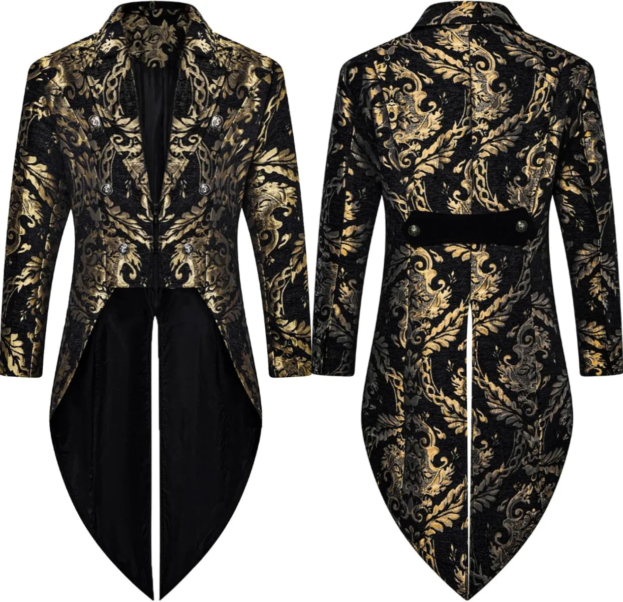 Haftowany frak gotycki steampunk dla mężczyzn – czarno-złoty czarny