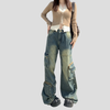 Jeans Cargo Verdes Vintage Desgastados con Bolsillos Rock