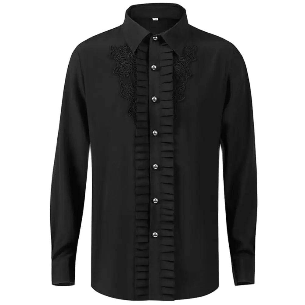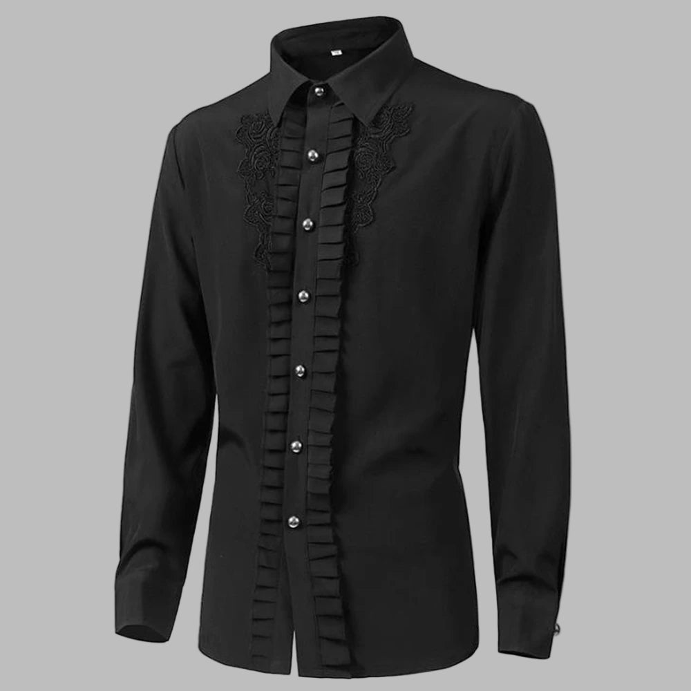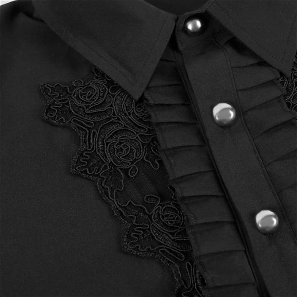 Koszula Gotycka Męska Czarna z Falbaną i Haftem Ver opciones