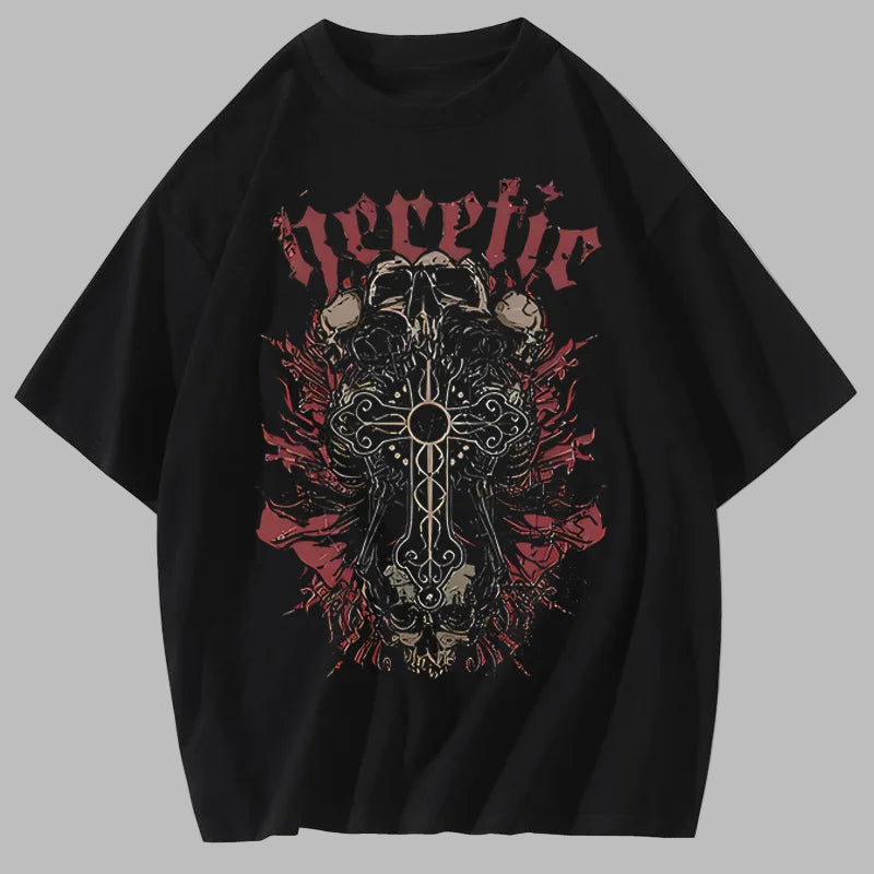 Koszulka Metal z Krzyżem i Czaszkami Czarna