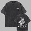 Koszulka Oversize Grunge Rock z Krzyżem "God bless" Metalowa Ver opciones