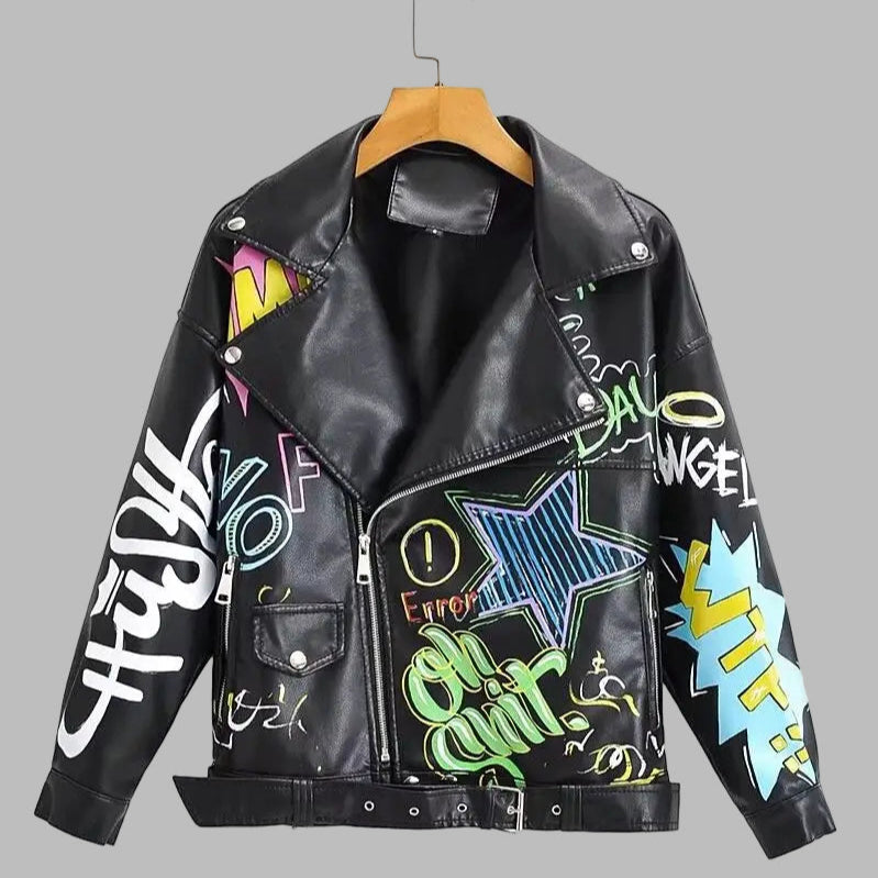 Kurtka Ramoneska Czarna Skórzana z Graffiti Punk Ver opciones