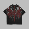 Oversize Koszulka Black Metal z Czerwonym Wzorem Czaszek