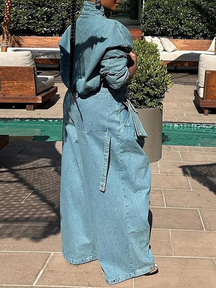 Pantalones Anchos de Estilo Punk Rock con Bolsillos de Mezclilla Ver opciones