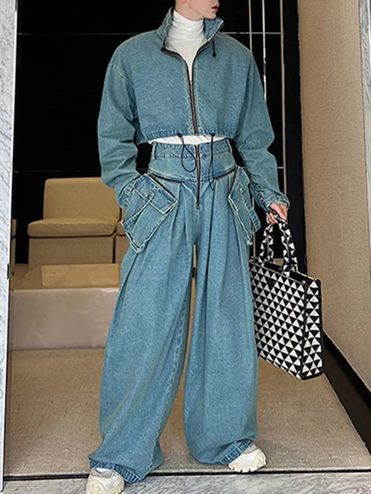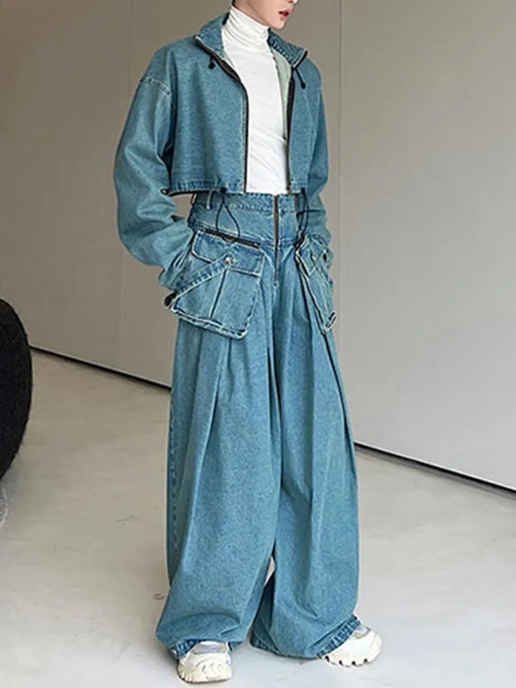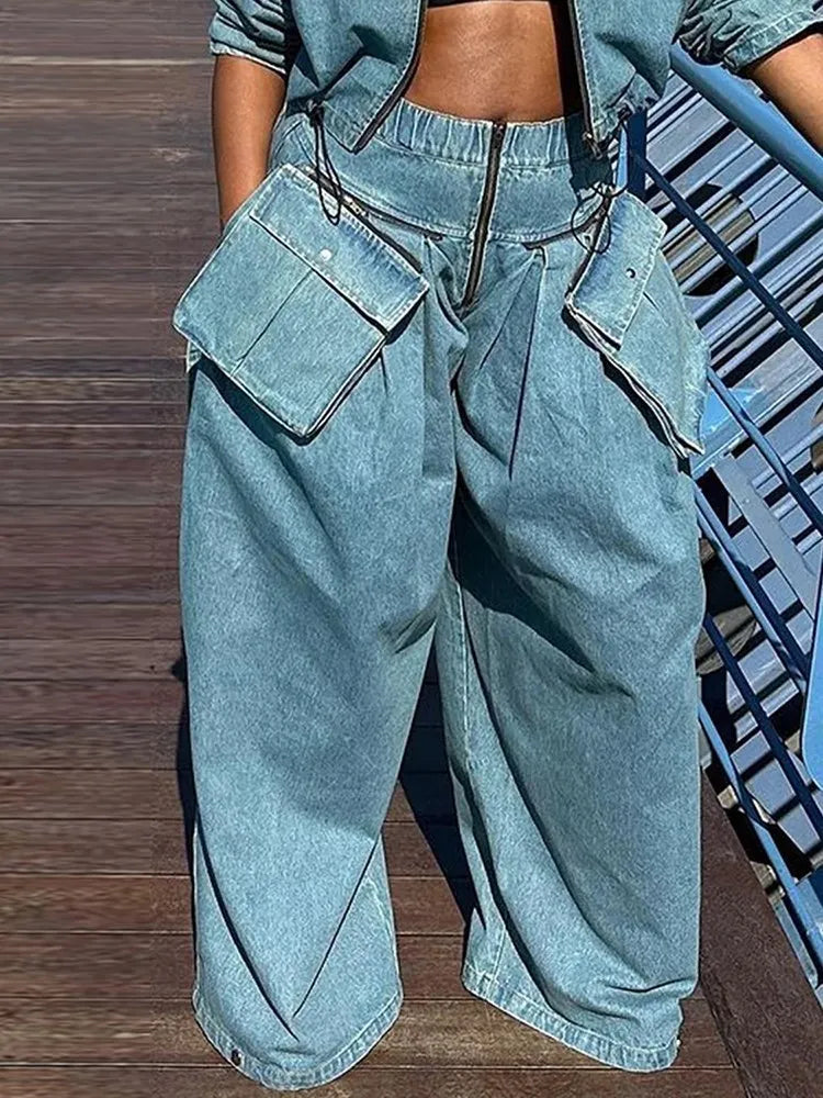 Pantalones Anchos de Estilo Punk Rock con Bolsillos de Mezclilla