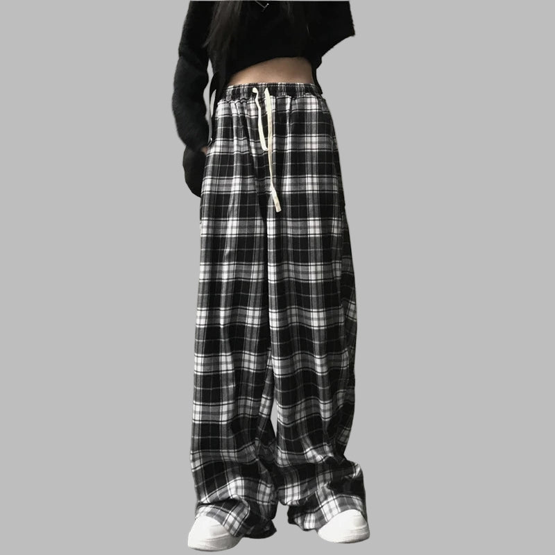 Pantalones Anchos Cuadros Blanco y Negro Sueltos Grunge Punk Mujer