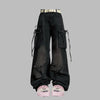 Pantalones Anchos Punk con Bolsillos Cargo Negros Desgastados