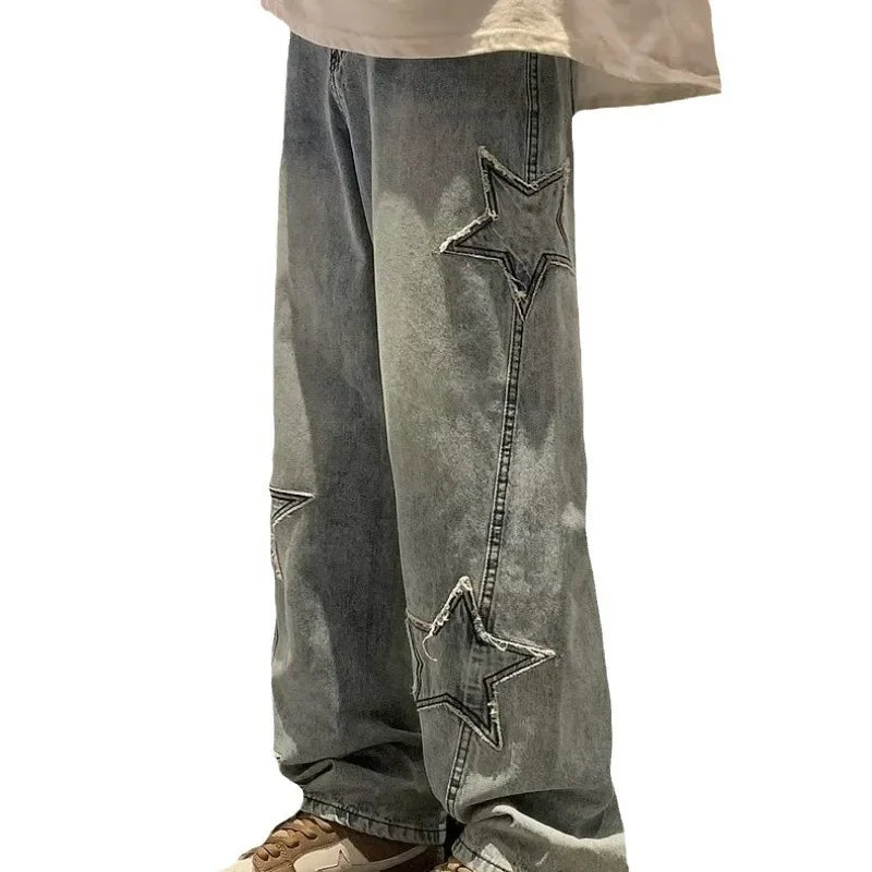 Pantalones Anchos Punk con Estrellas Khaki Baggy