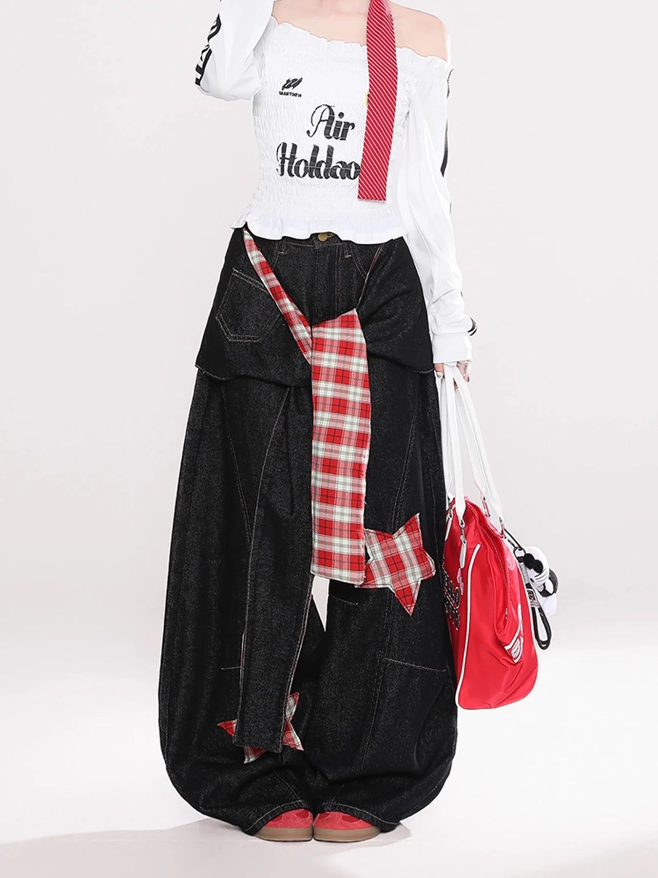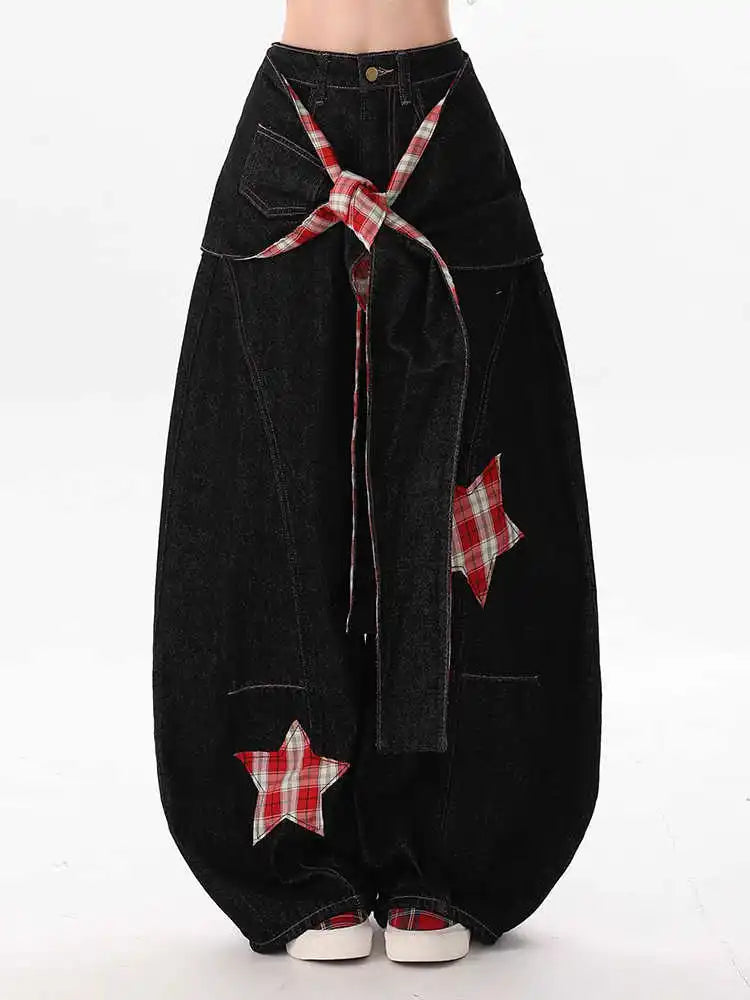 Pantalones Anchos Punk Negros Largos con Estrellas para Mujer Oversize