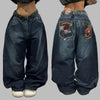 Pantalones Baggy de Metal con Cinturón de Tachuelas y Bordado