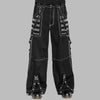 Pantalones Cargo Punk Metal Negros con Detalles Blancos